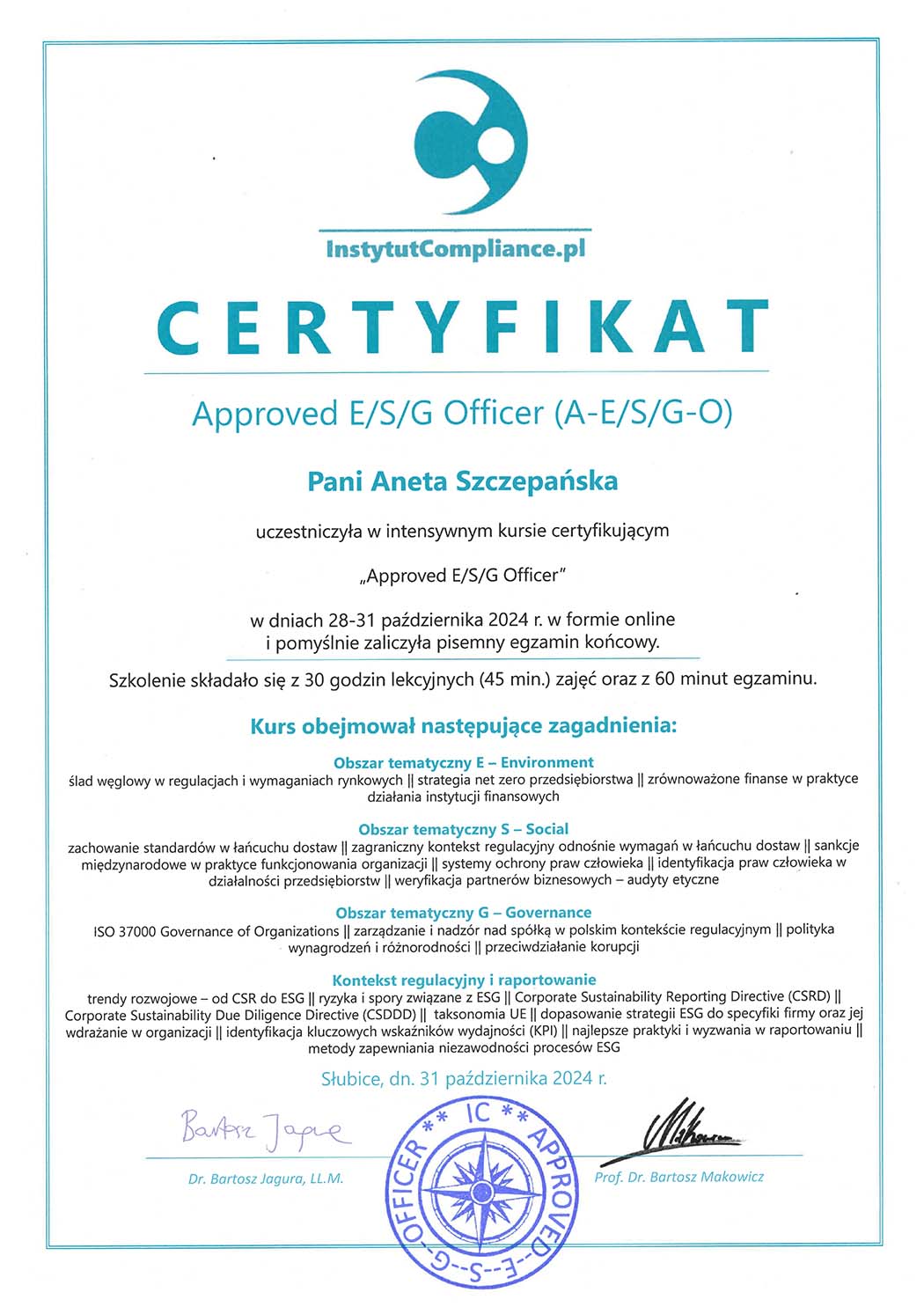 Jestem menedżerem z ponad 20-letnim doświadczeniem w zarządzaniu komunikacją korporacyjną oraz certyfikowanym Approved ESG Officerem. Wiem, jak umacniać markę zarówno poprzez komunikację wewnętrzną, jak i zewnętrzną. Jednak moim prawdziwym konikiem jest budowanie strategii ESG i komunikacja tego tematu, w szczególności w zakresie kwestii społecznych.